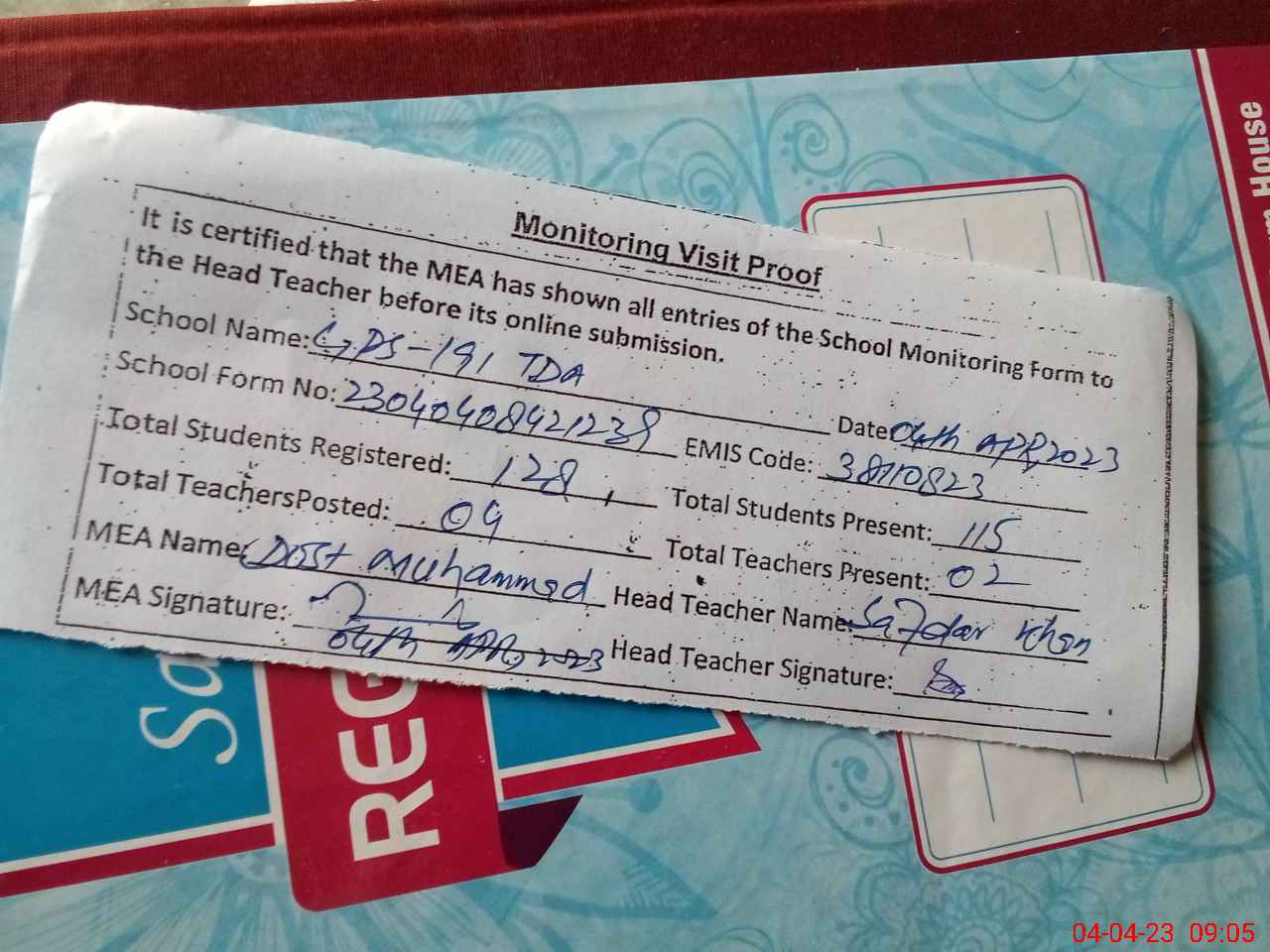 | EMIS Code: 38110823 | Name of School: GPS CHAK NO 191 TDA | |||