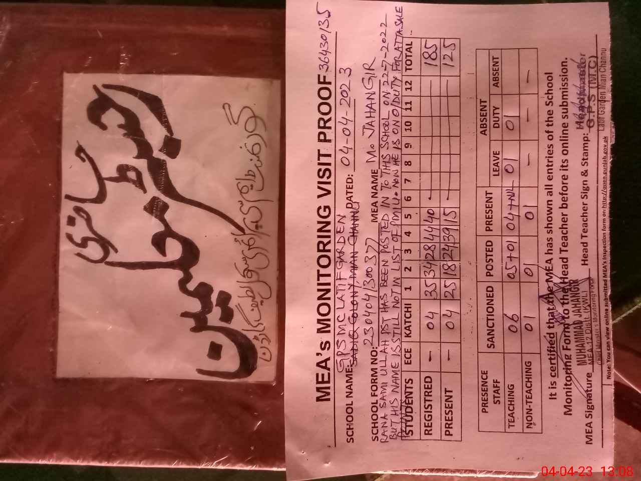 | EMIS Code: 36430135 | Name of School: GPS MC LATIF GARDEN SADIQ COLONY MIAN CHANNU | |||