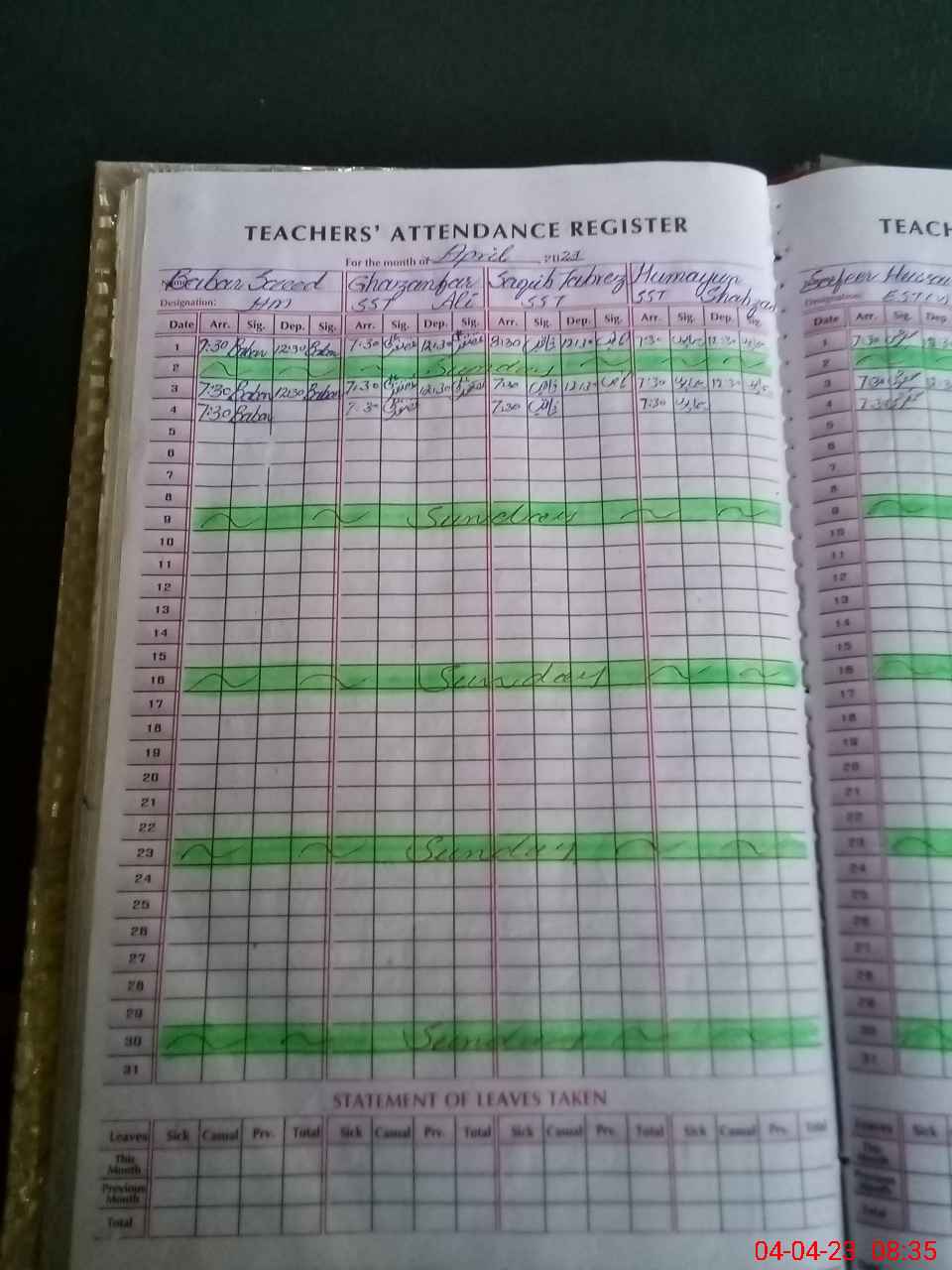 | 37**** | Sy**** Aa**** Wa**** Ka**** | SESE | Contract | 0 | 0 | 0 | 0 | 0 | 0 | 0 | 0 | 0 | Exam Duty |