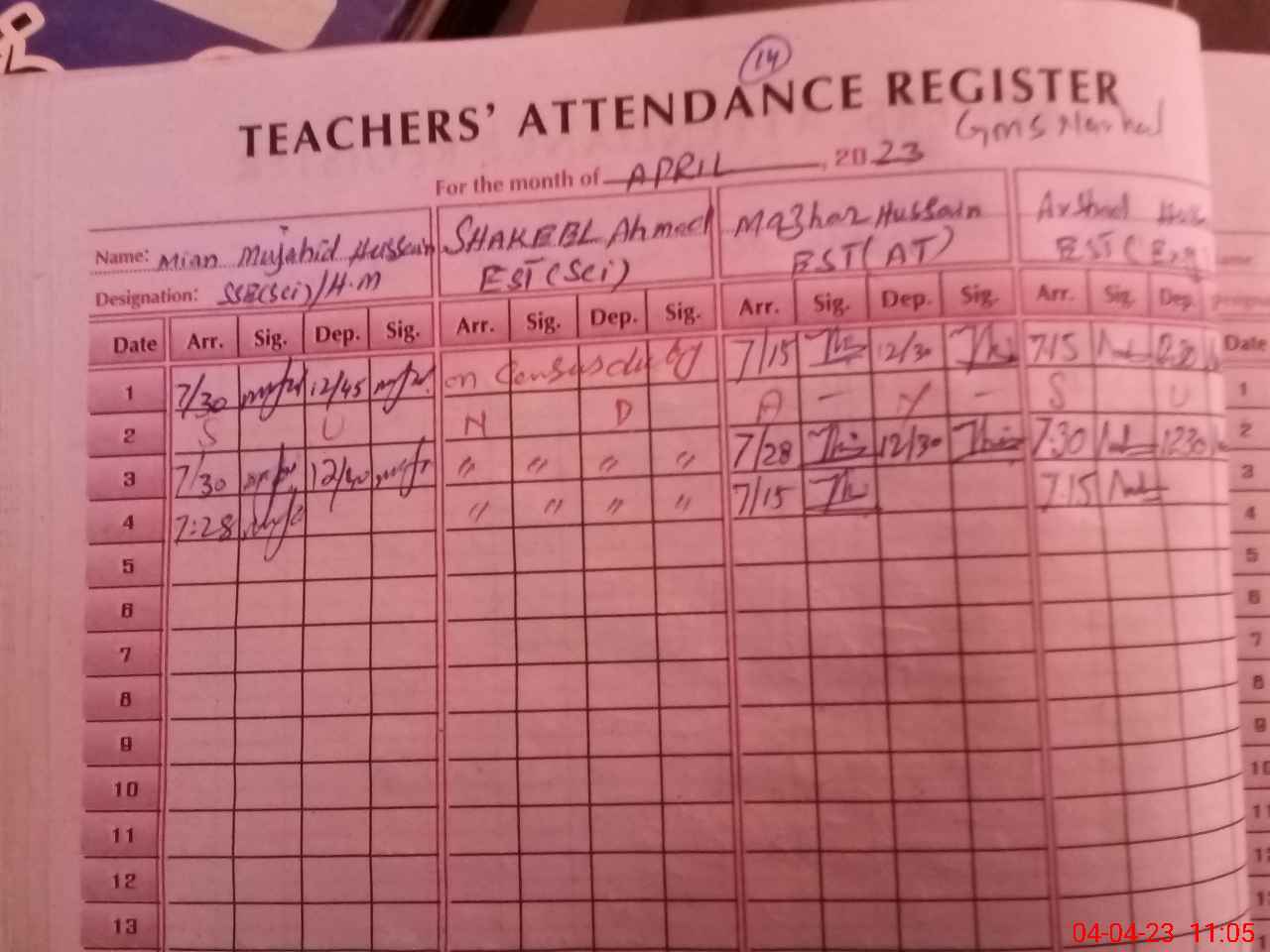 | Monitoring Date: 04-04-2023 | Start Time: 04-04-2023 10:18 AM | End Time: 04-04-2023 11:06 AM | Name of MEA: SH**** AH**** | |