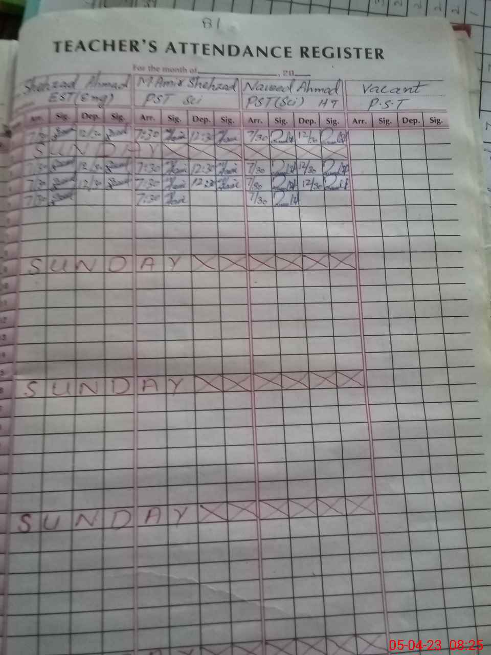 | CNIC | Full Name | Designation | R/C | Absence During Last Calender Month |