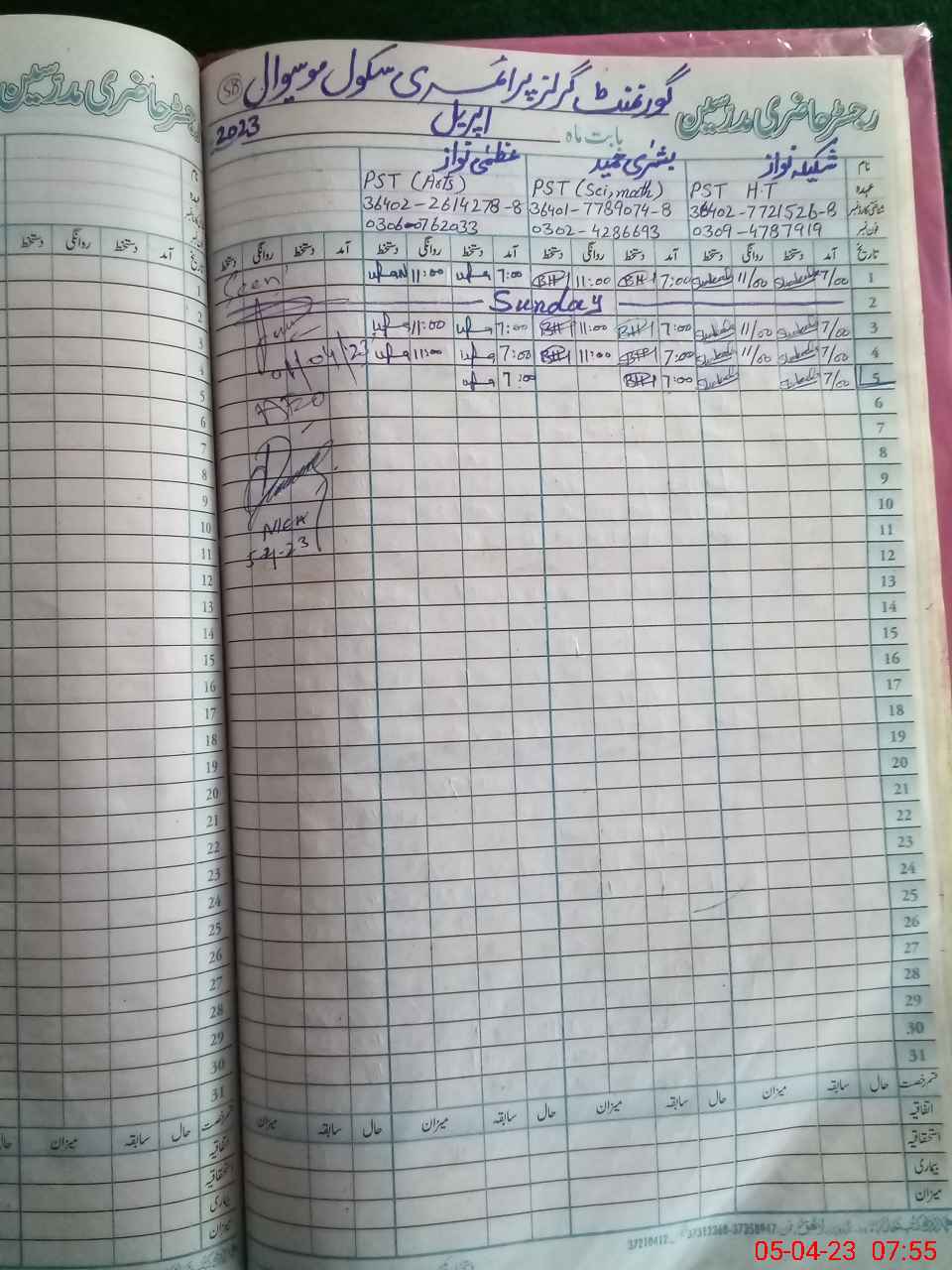 | Name: Uz**** Na**** Designation: (School Headmaster's/Headmistress's) PST Phone/Cell Number: 03**** |