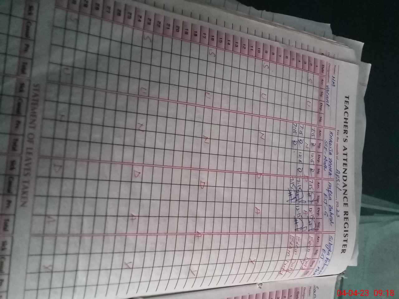 | 36**** | Si**** Re**** | Regular | 0 | 0 | 0 | 0 | 0 | 0 | 0 | 0 | 0 | Exam Duty | |