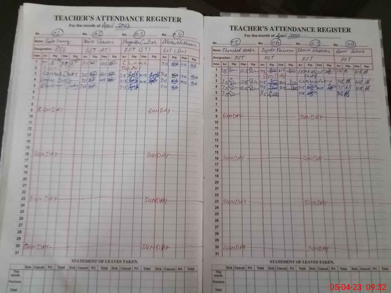 | 36**** | Bu**** Pa**** | PST | Regular | 0 | 0 | 0 | 0 | 0 | 0 | 0 | 0 | 0 | Exam Duty |
