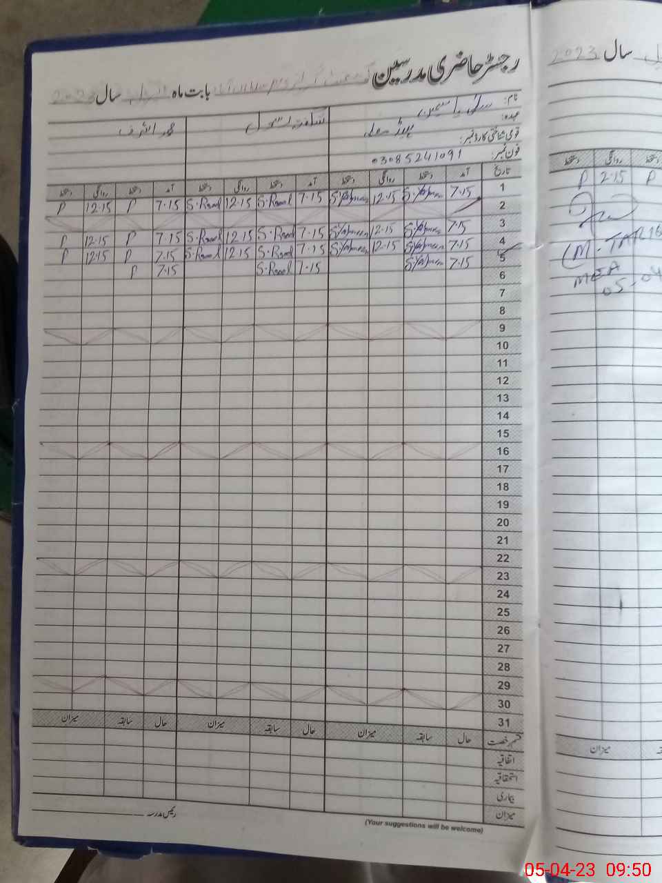 | Name: Se**** Ya**** Designation: (School Headmaster's/Headmistress's) PST Phone/Cell Number: 03**** |