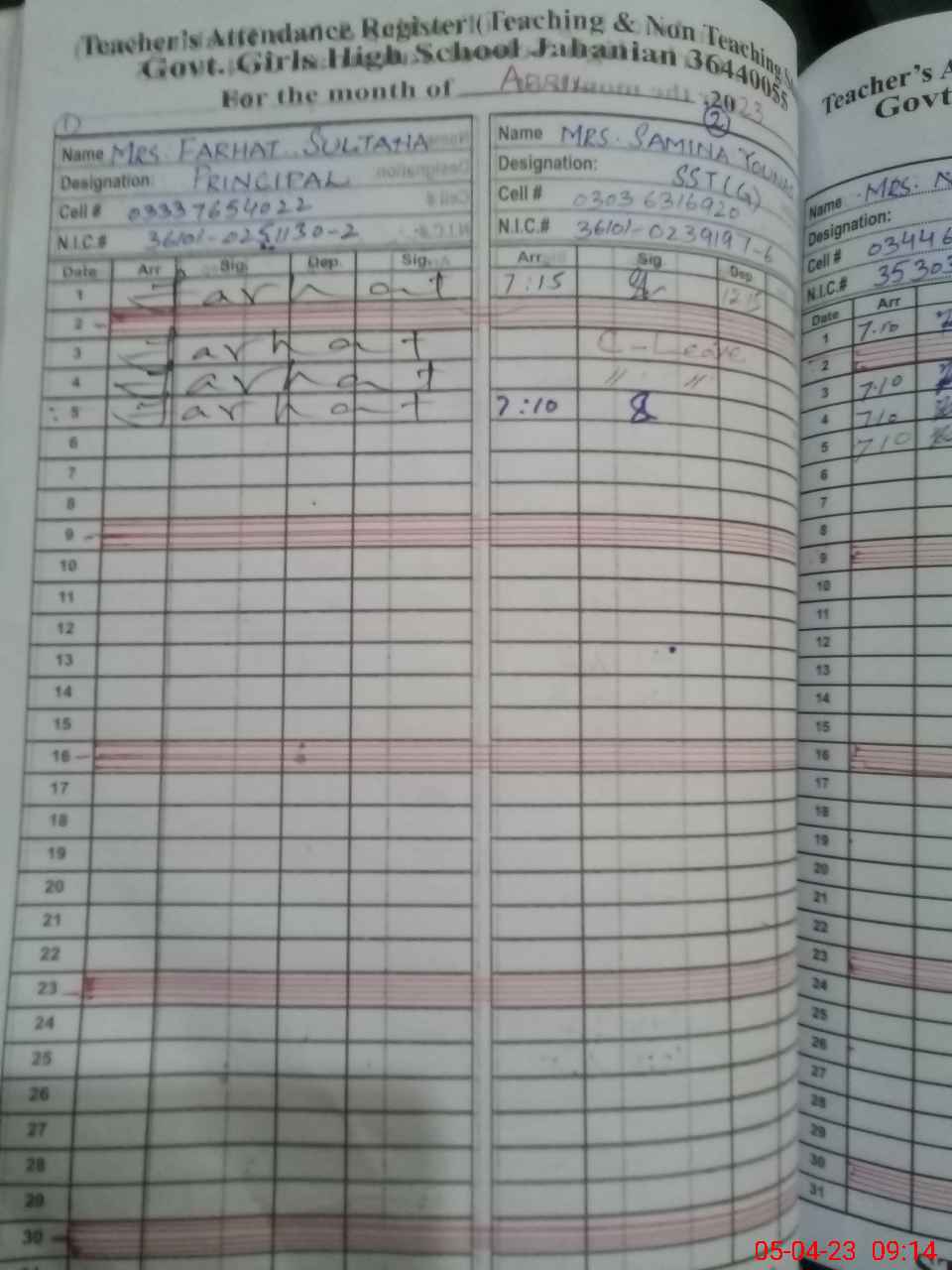 | CNIC | Full Name | Designation | R/C | Absence During Last Calender Month |