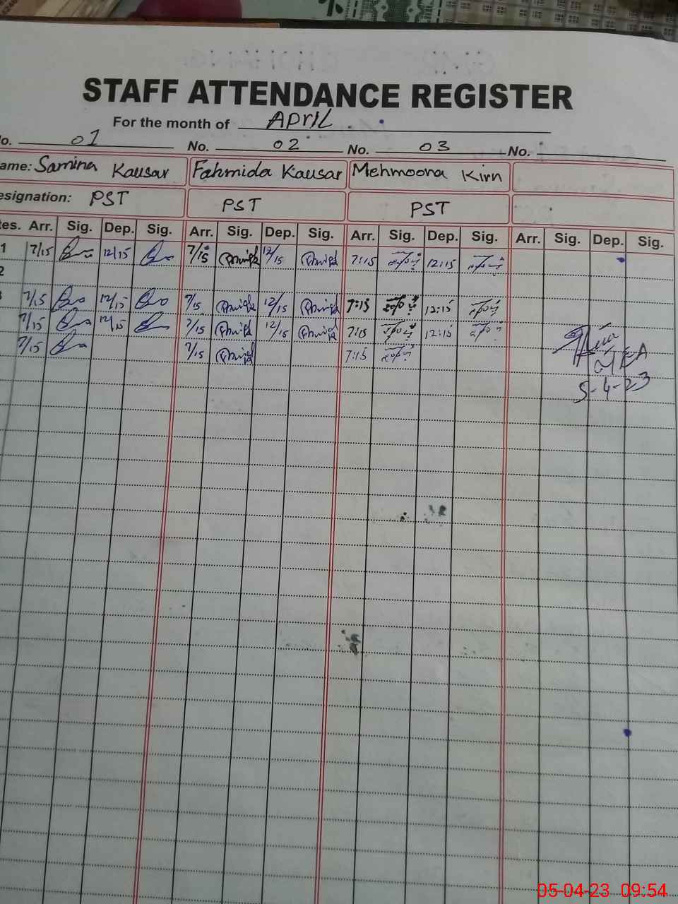 | Name: SA**** KO**** Designation: (School Headmaster's/Headmistress's) PST Phone/Cell Number: 03**** |