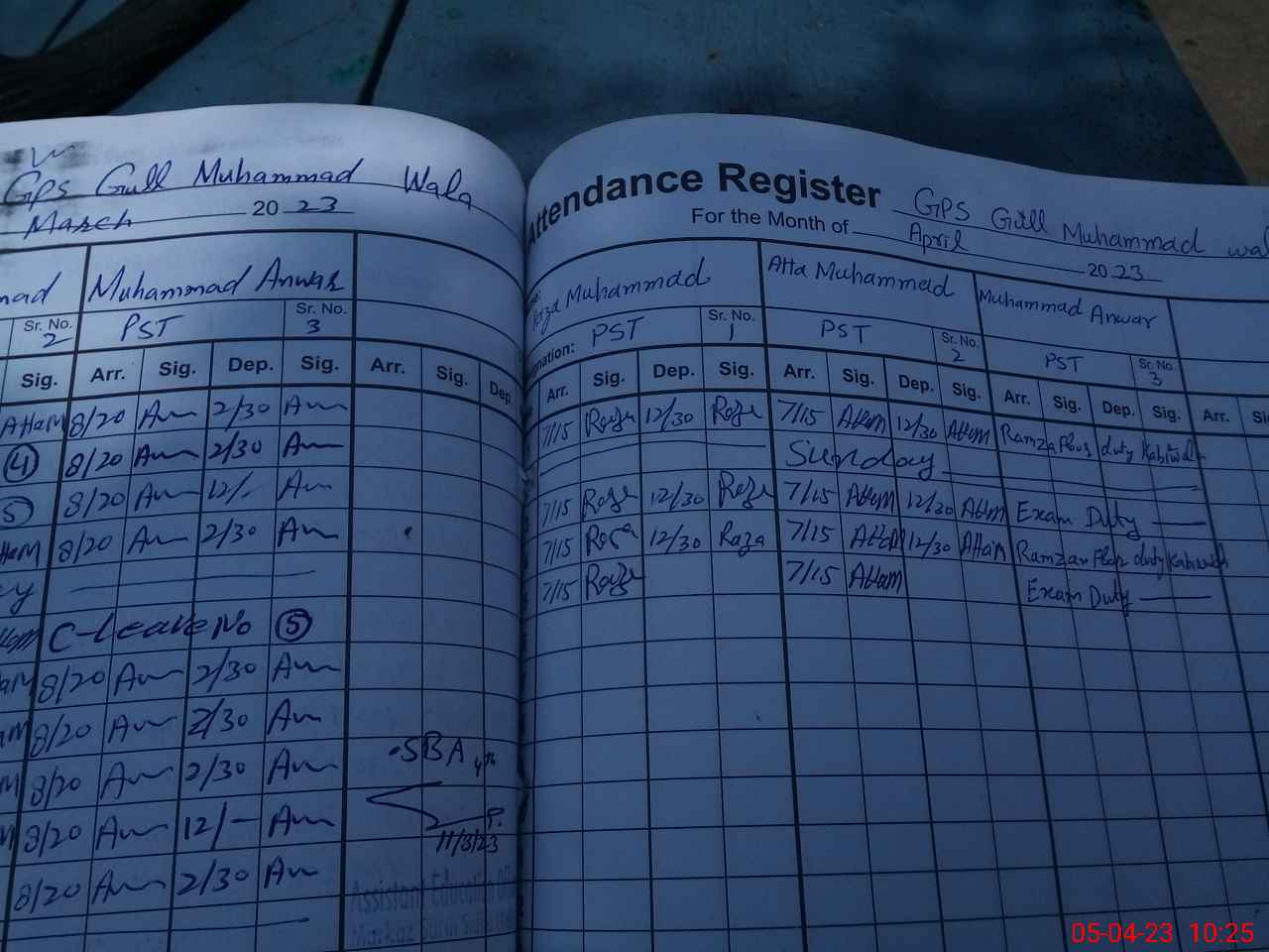 | CNIC | Full Name | Designation | R/C | Absence During Last Calender Month |