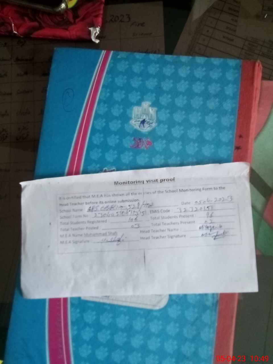 | EMIS Code: 32320151 | Name of School: GPS CHAK NO. 529/TDA | |||
