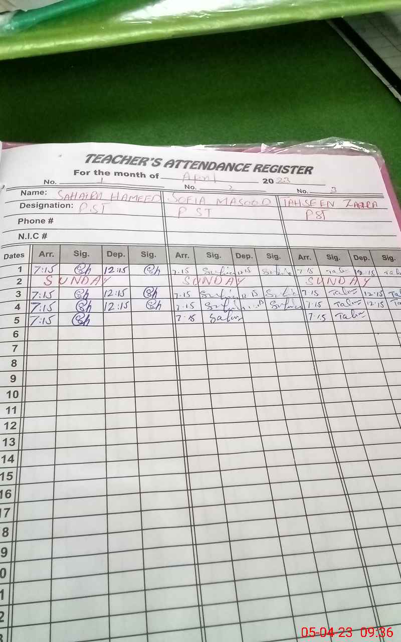| Name: SA**** HA**** Designation: (School Headmaster's/Headmistress's) PST Head Phone/Cell Number: 03**** |