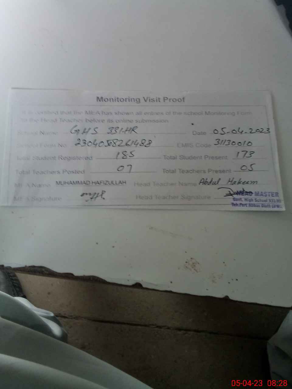 | EMIS Code: 31130010 | Name of School: GHS CHAK 331/HR | |||
