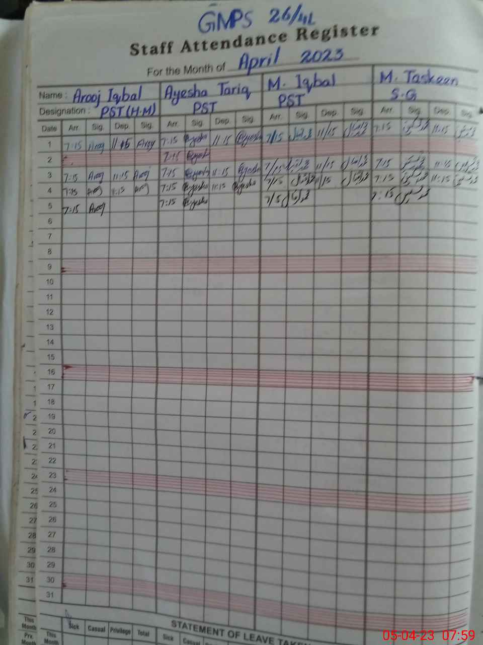 | Name: AR**** IQ**** Designation: (School Headmaster's/Headmistress's) PST Phone/Cell Number: 03**** |