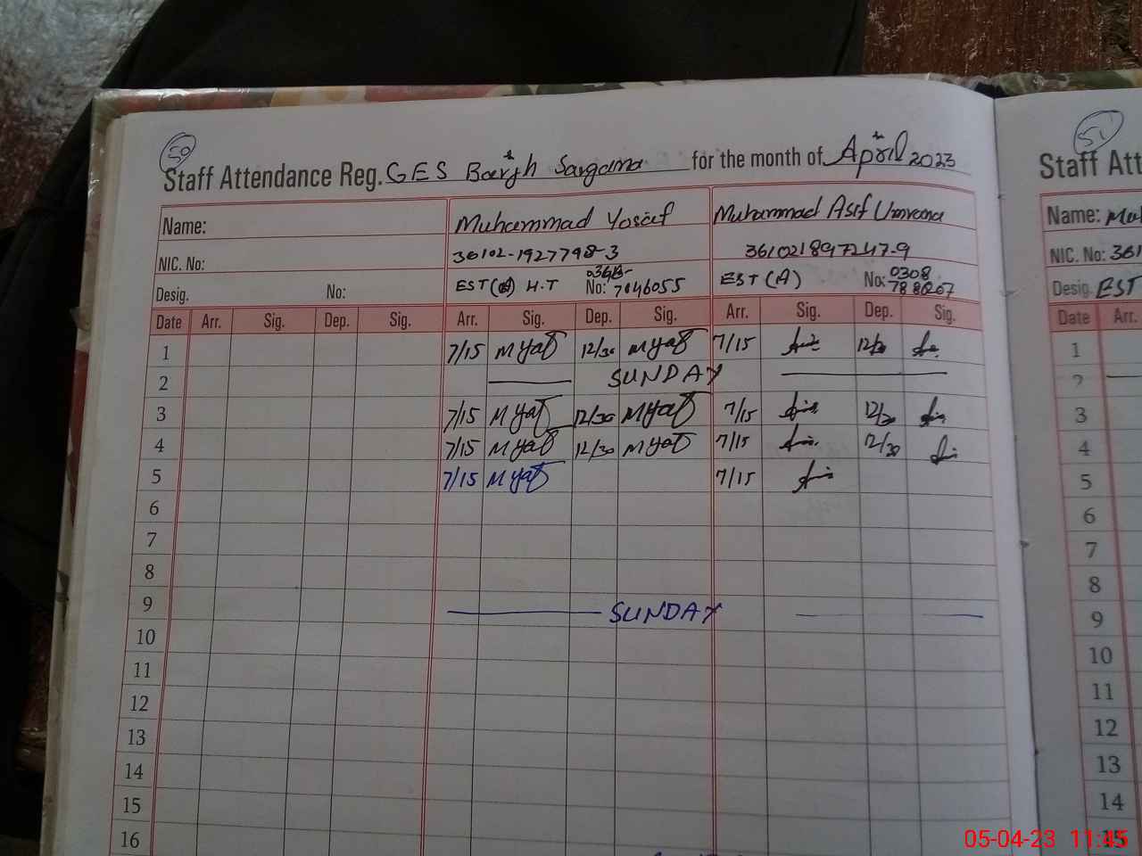 | CNIC | Full Name | Designation | R/C | Absence During Last Calender Month |