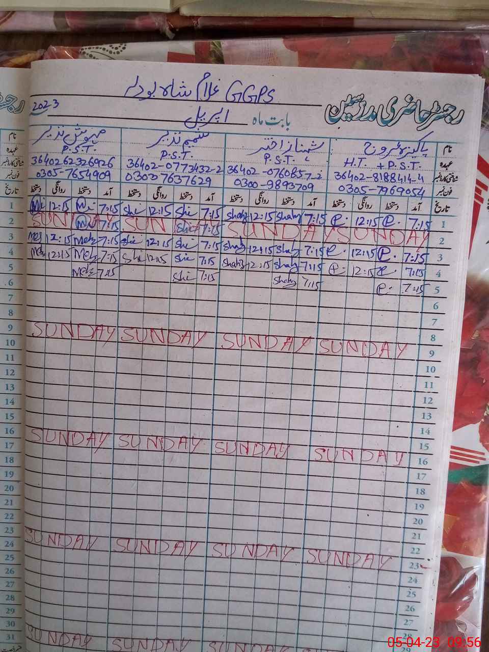 | Name: Pa**** Ar**** Designation: (School Headmaster's/Headmistress's) PST Phone/Cell Number: 03**** |