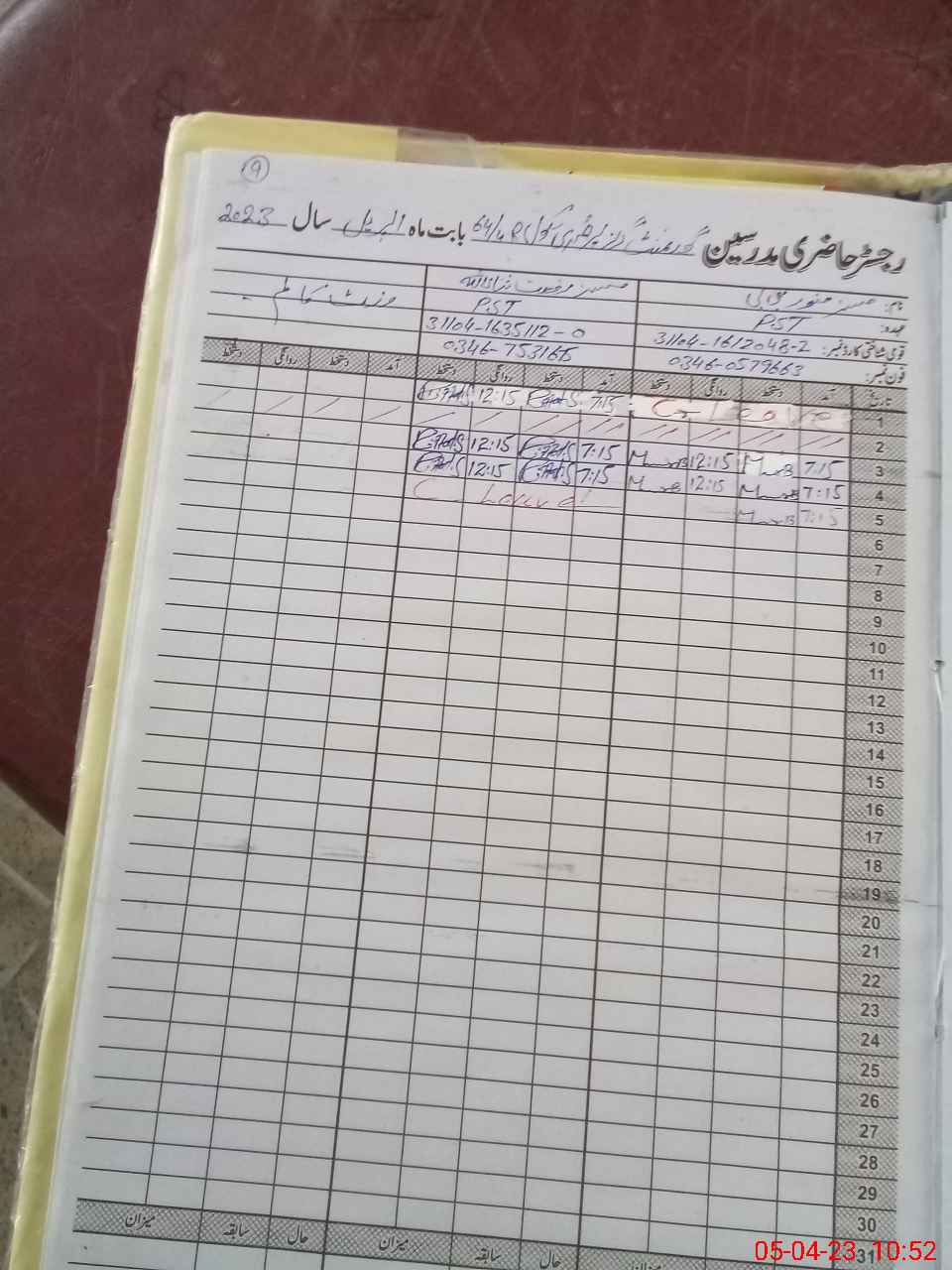| Name: MU**** BI**** Designation: (School Headmaster's/Headmistress's) PST Phone/Cell Number: 03**** |
