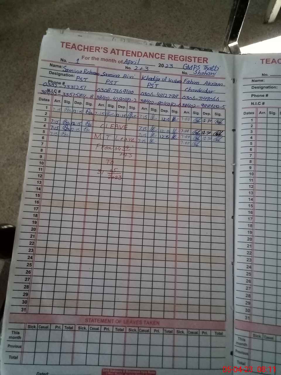 | 38**** | Sa**** Bi**** | PST | Regular | 0 | 0 | 0 | 0 | 0 | 0 | 0 | 0 | 0 | Maternity |