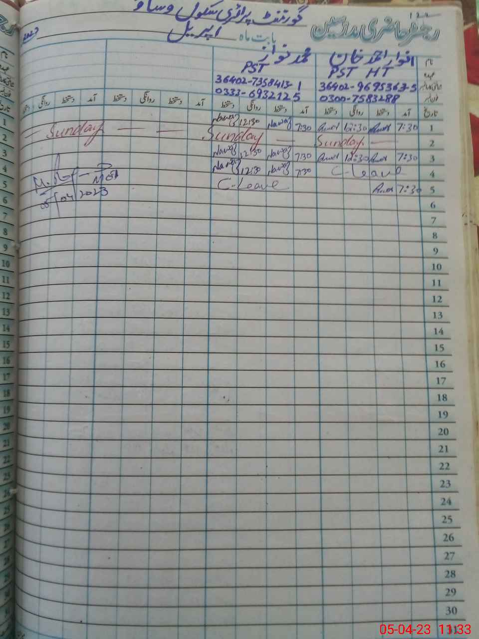 | Name: An**** Ah**** Designation: (School Headmaster's/Headmistress's) PST Phone/Cell Number: 03**** |