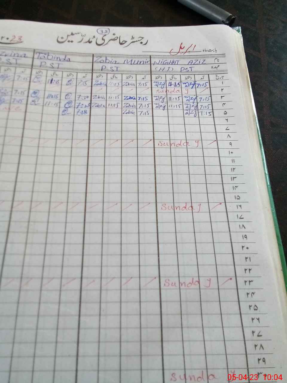 | CNIC | Full Name | Designation | R/C | Absence During Last Calender Month |