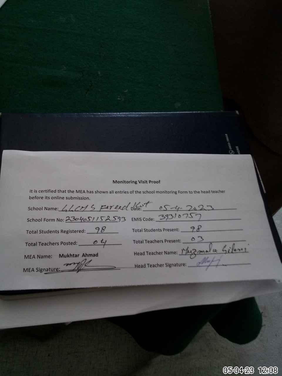 | EMIS Code: 39310757 | Name of School: GGCMS FAREED KOT | |||