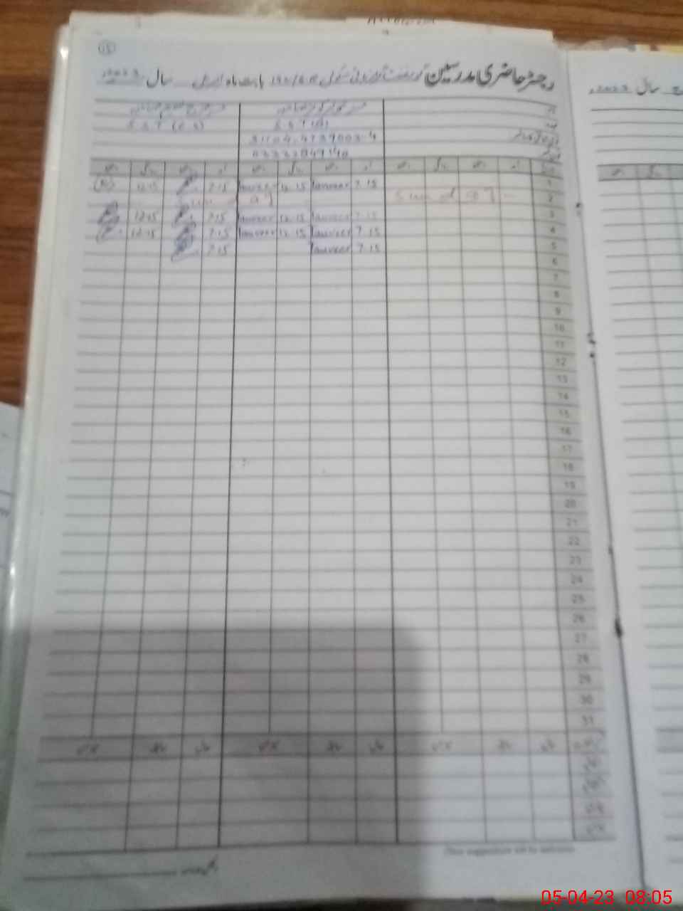 | CNIC | Full Name | Designation | R/C | Absence During Last Calender Month |
