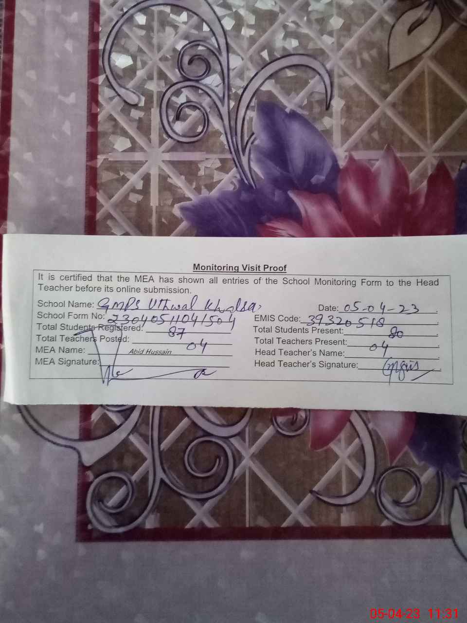 | EMIS Code: 39320518 | Name of School: GMPS UTHWAL KHALSA | |||