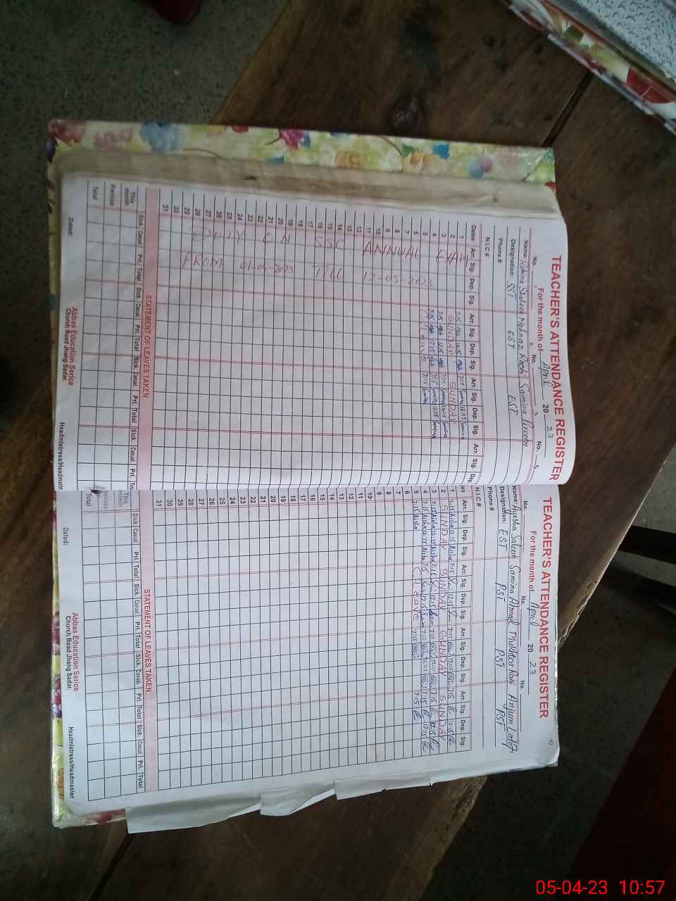 | CNIC | Full Name | Designation | R/C | Absence During Last Calender Month |