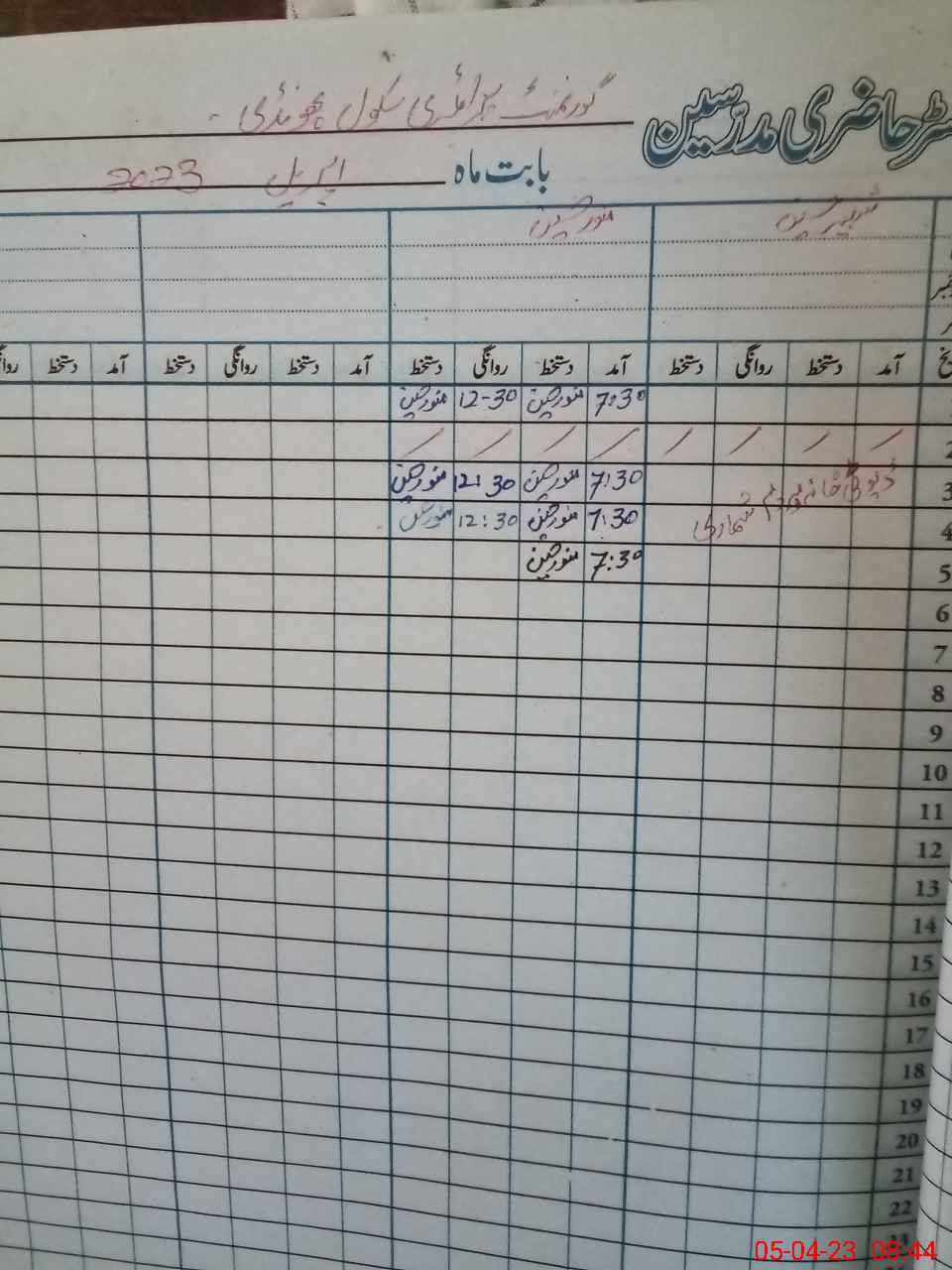 | CNIC | Full Name | Designation | R/C | Absence During Last Calender Month |