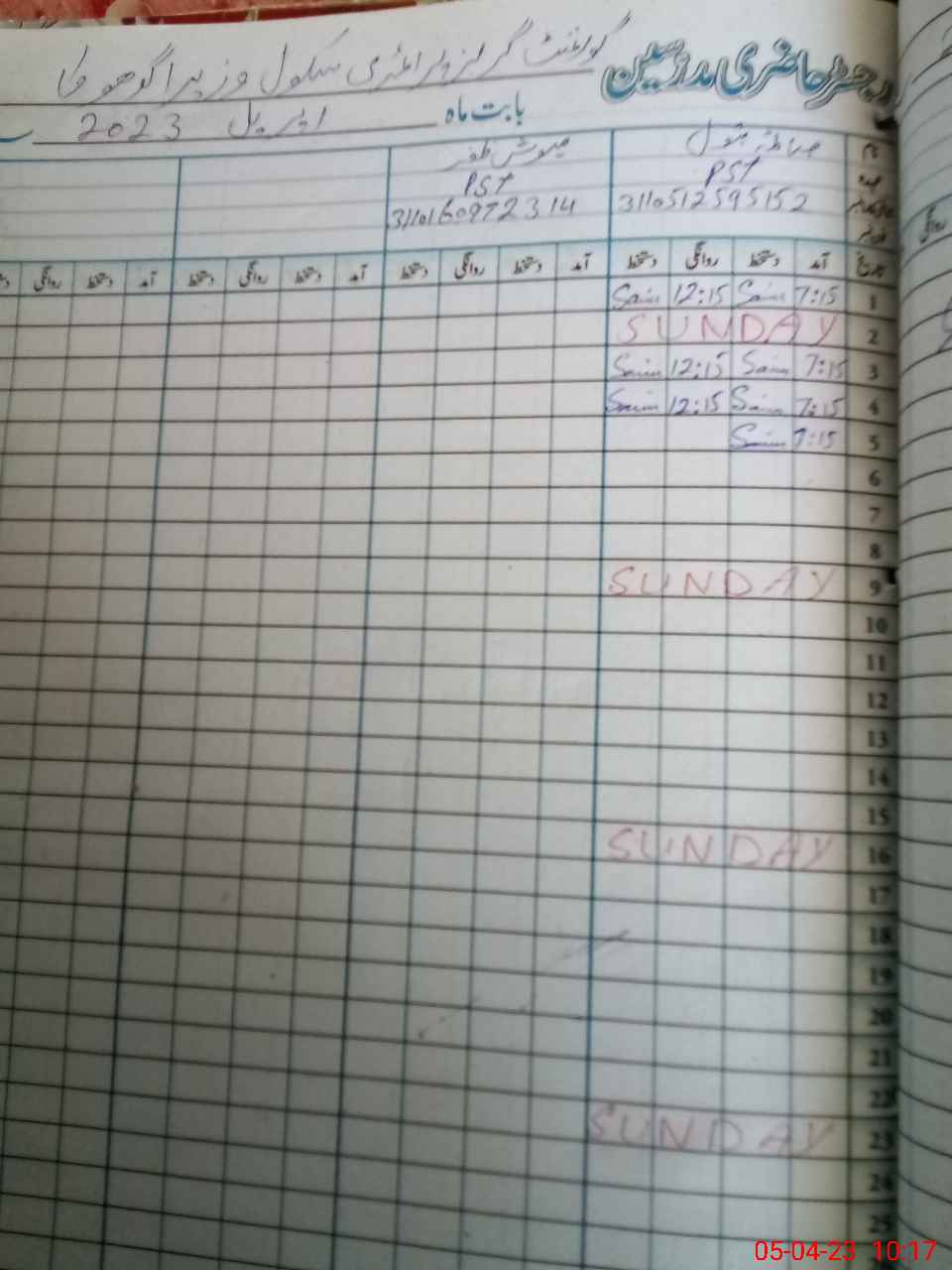 | EMIS Code: 31150509 | Name of School: GGPS WAZEERA GADHOKA | |||