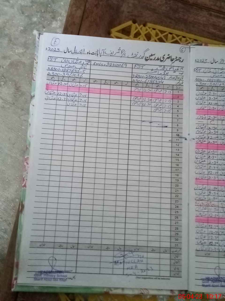 | Name: Fi**** Mu**** Designation: (School Headmaster's/Headmistress's) PST Phone/Cell Number: 03**** |