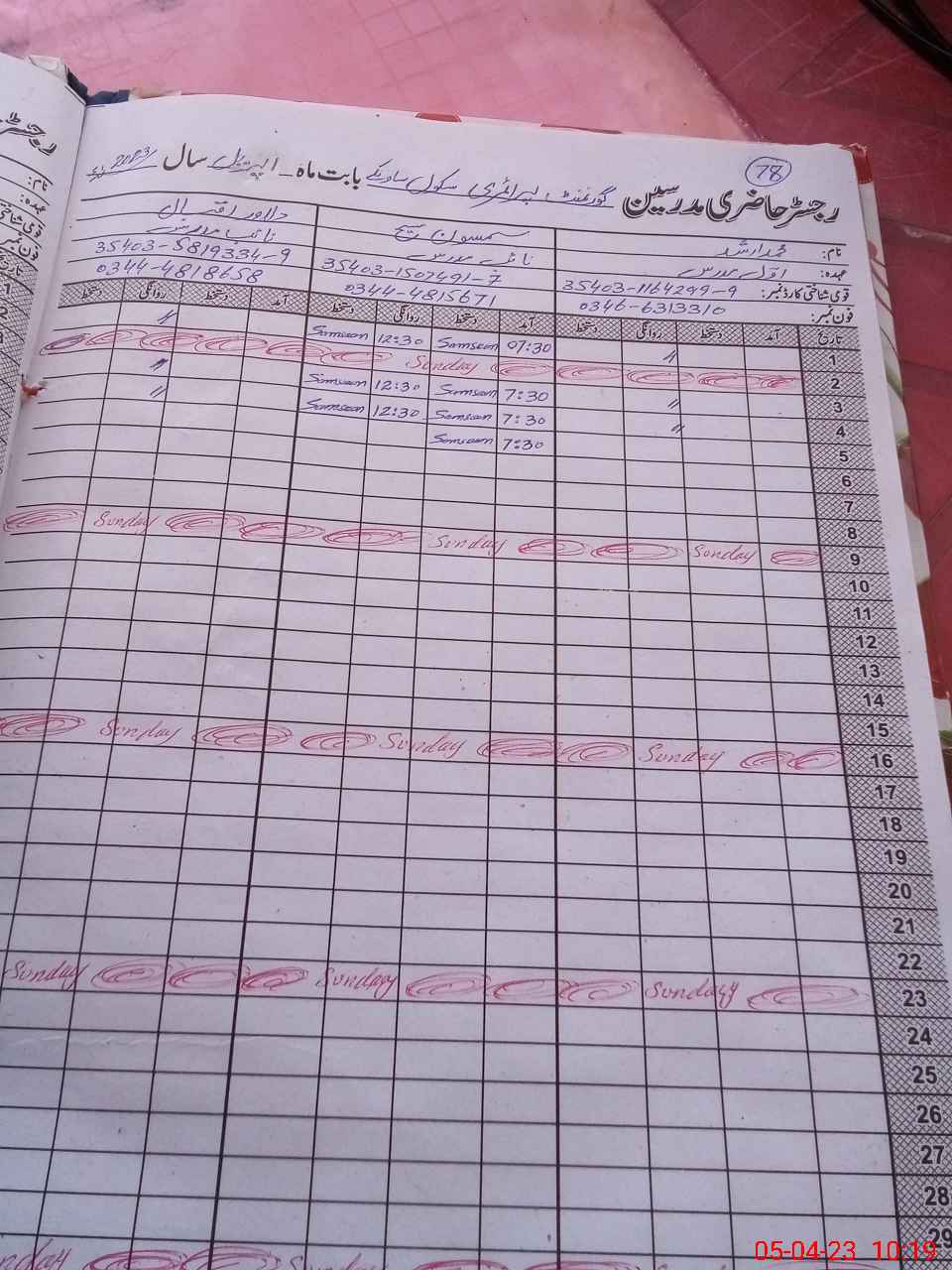 | District: SHEIKHUPURA | Tehsil: SAFDARABAD | Markaz: PHULARWAN-MALE | Level: Primary | |