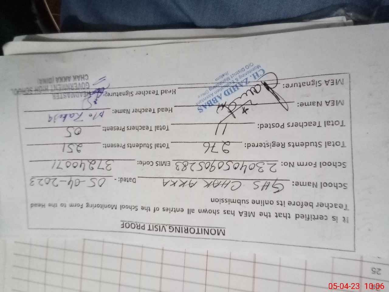 | EMIS Code: 37240071 | Name of School: GHS CHAK AKKA | |||