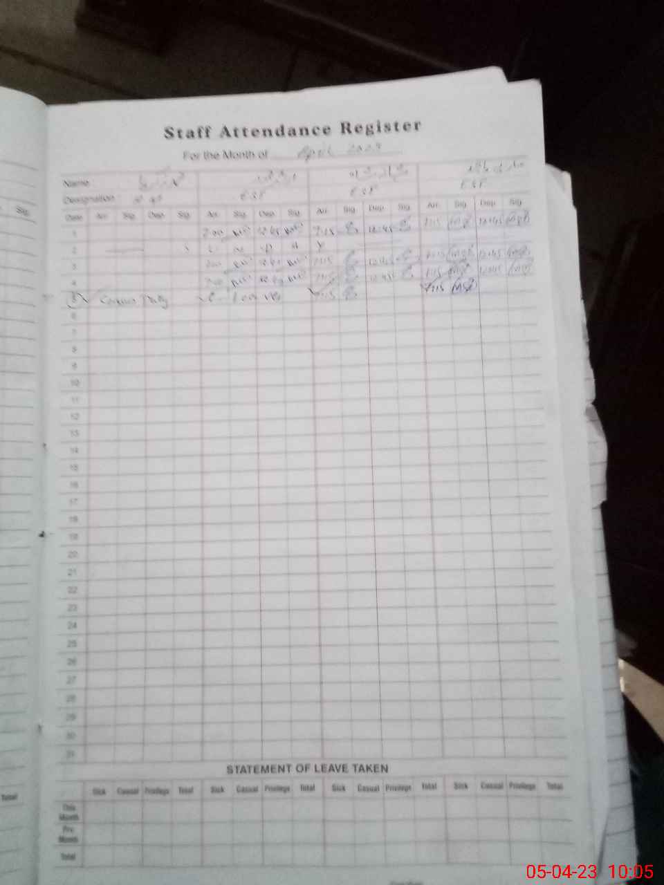 Leave Type | Remarks for Today (Leave,Training, Exam,Absent,Late, Other Duty) |