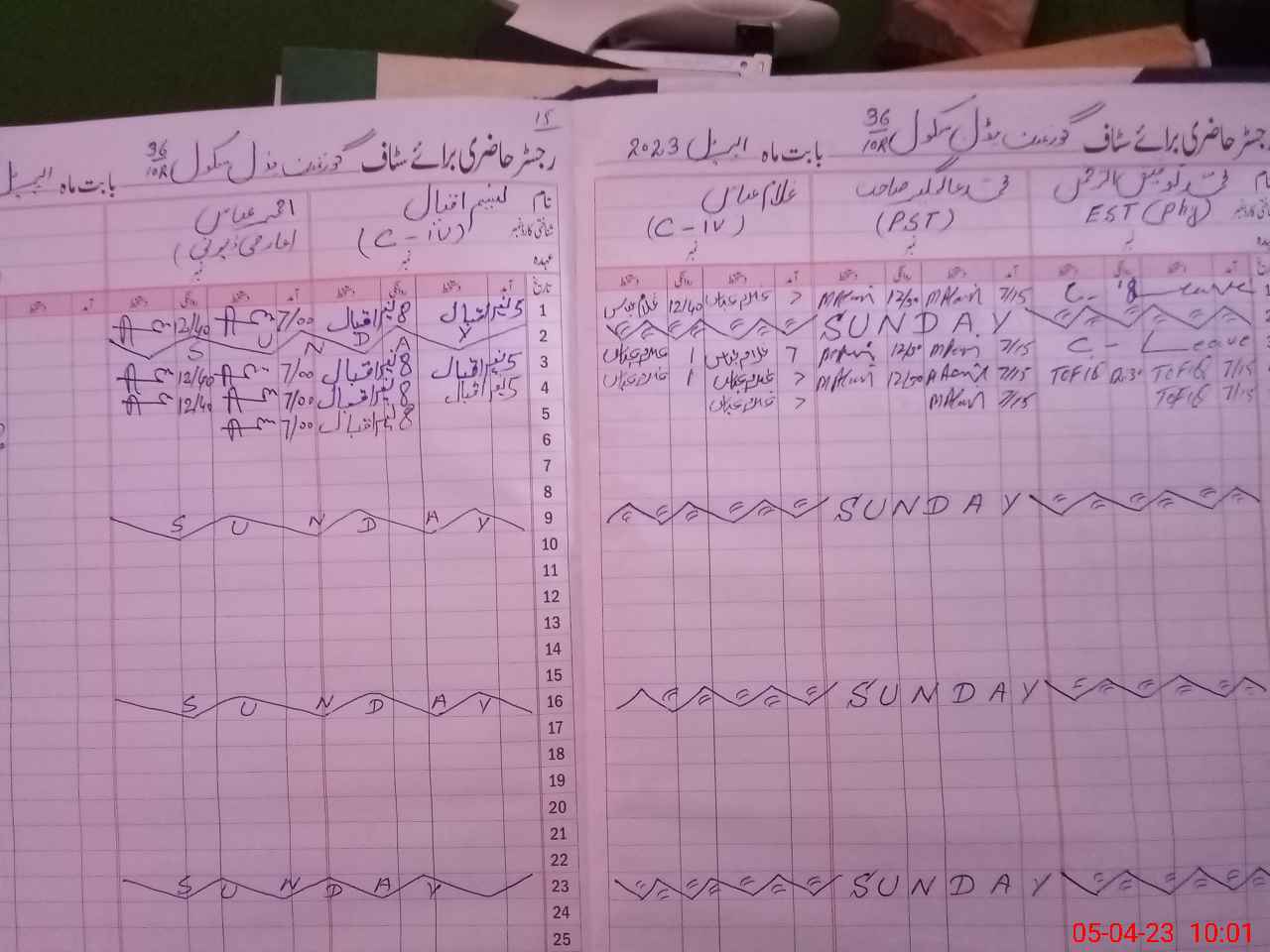| CNIC | Full Name | Designation | R/C | Absence During Last Calender Month |