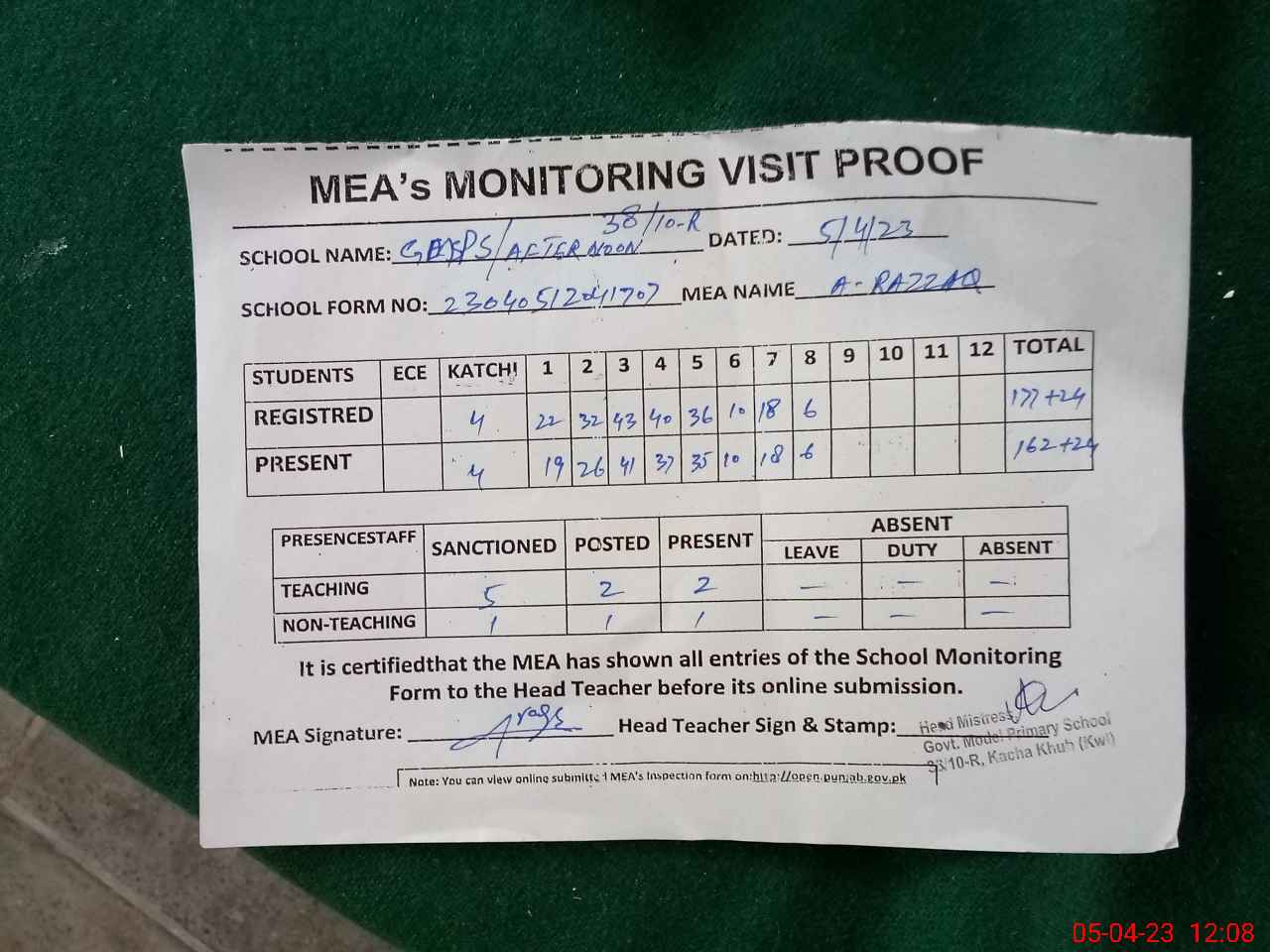 | EMIS Code: 36420438 | Name of School: GMPS 38/10-R, KACHA KHUH | |||