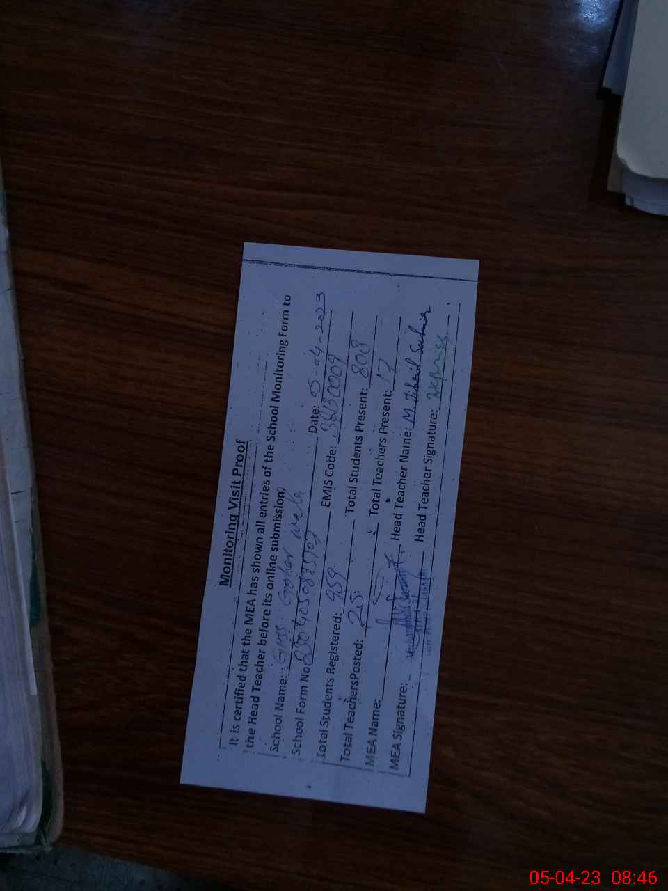 | EMIS Code: 38130009 | Name of School: GHSS GOHAR WALA | |||