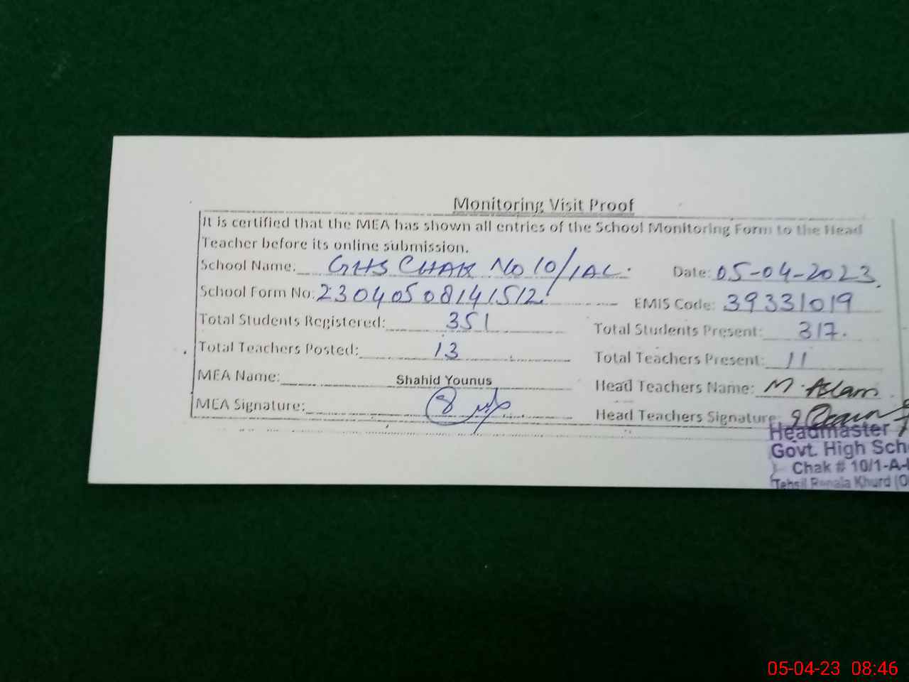 | EMIS Code: 39331019 | Name of School: GHS CHAK 10/1-AL | |||