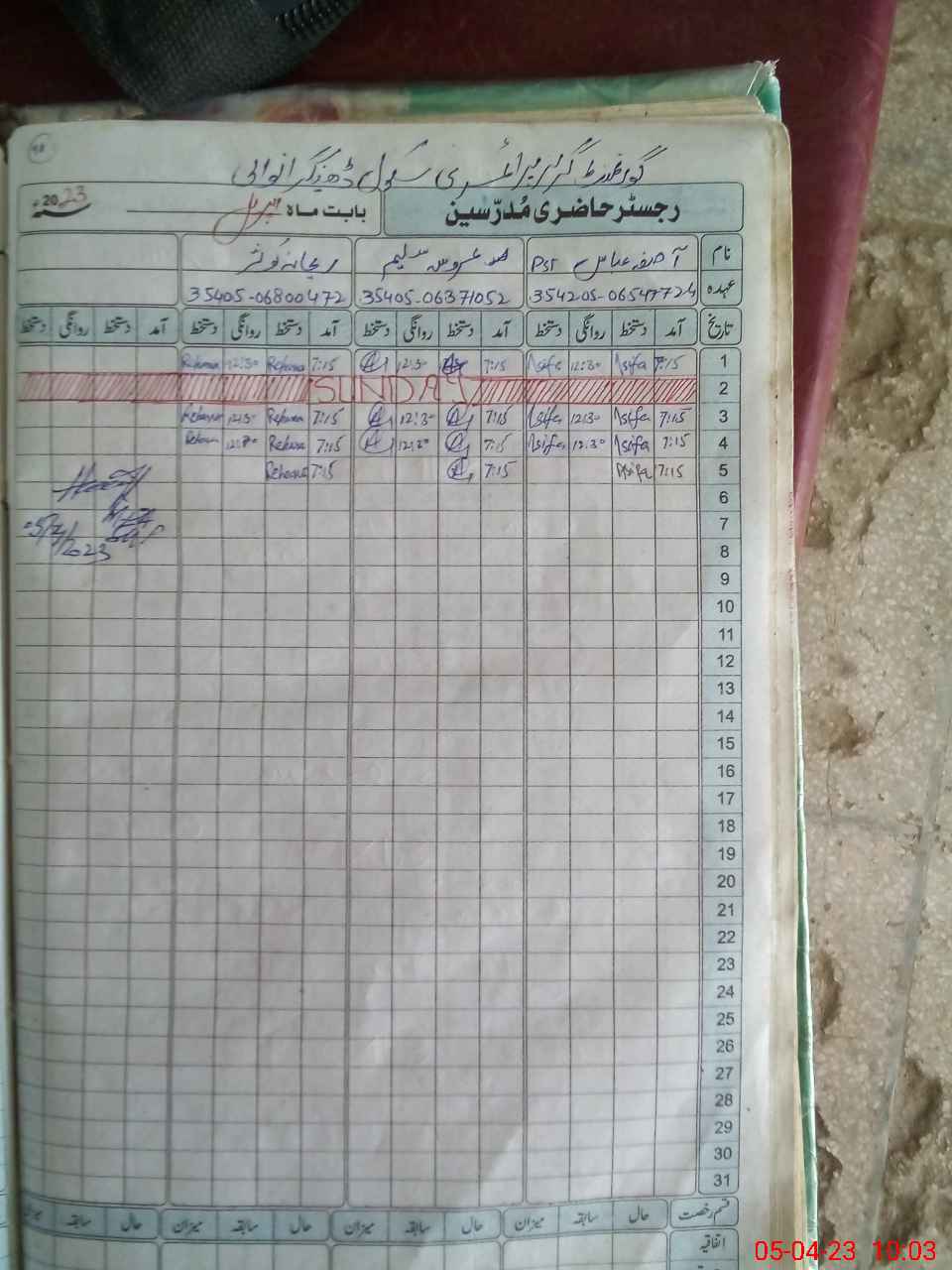 | Name: AS**** AB**** Designation: (School Headmaster's/Headmistress's) PST Phone/Cell Number: 03**** |