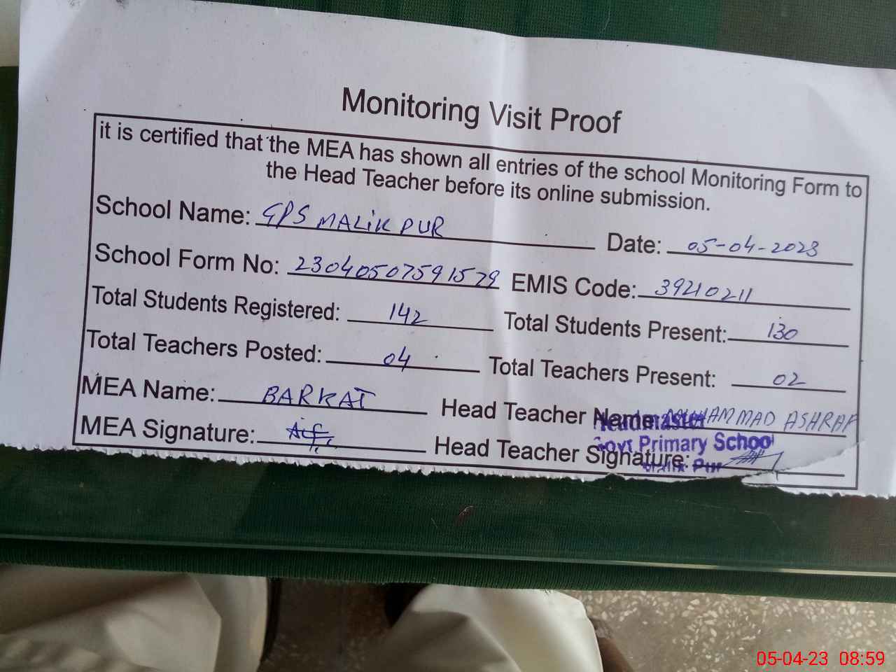| EMIS Code: 39210211 | Name of School: GPS MALIK PUR PO PAKPATTAN | |||
