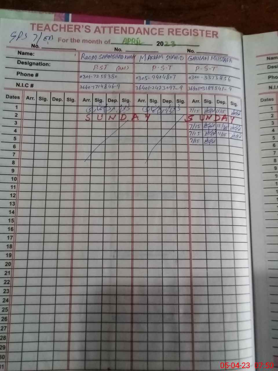 | Name: MU**** SH**** Designation: (School Headmaster's/Headmistress's) PST Phone/Cell Number: 03**** |