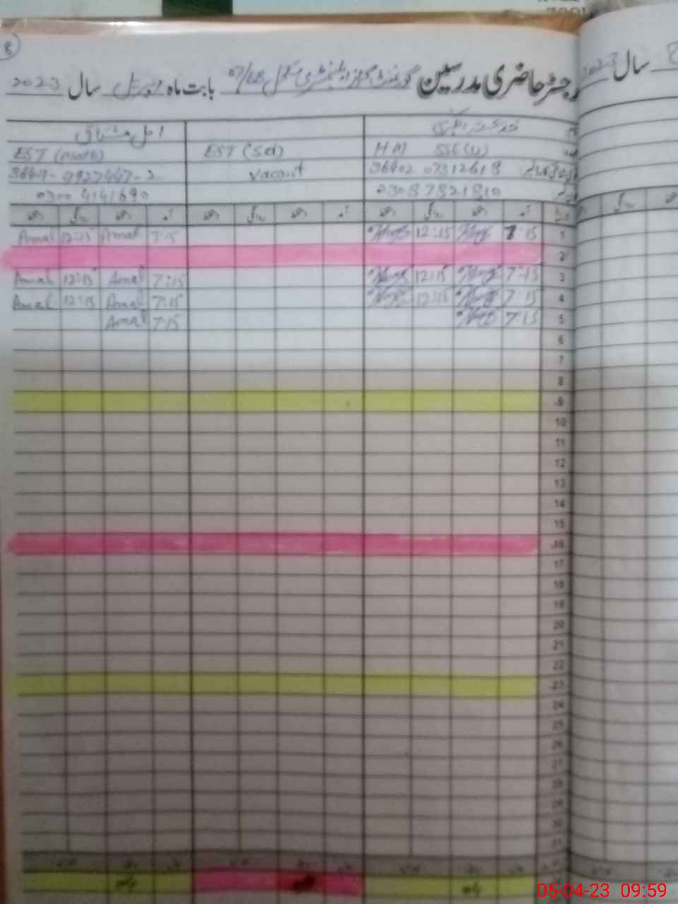 | Name: KH**** TU**** KU**** Designation: (School Headmaster's/Headmistress's) SSE (URDU) Phone/Cell Number: 03**** |
