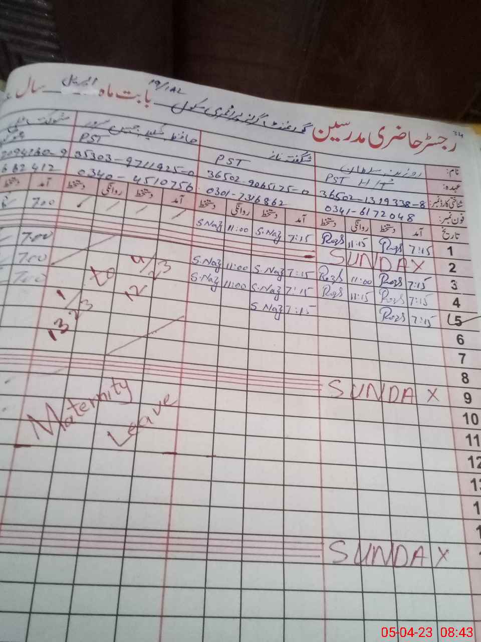 | 35**** | Ha**** Sh**** Ja**** Sa**** | PST | Regular | 0 | 0 | 0 | 0 | 0 | 0 | 0 | 0 | 0 | Maternity |