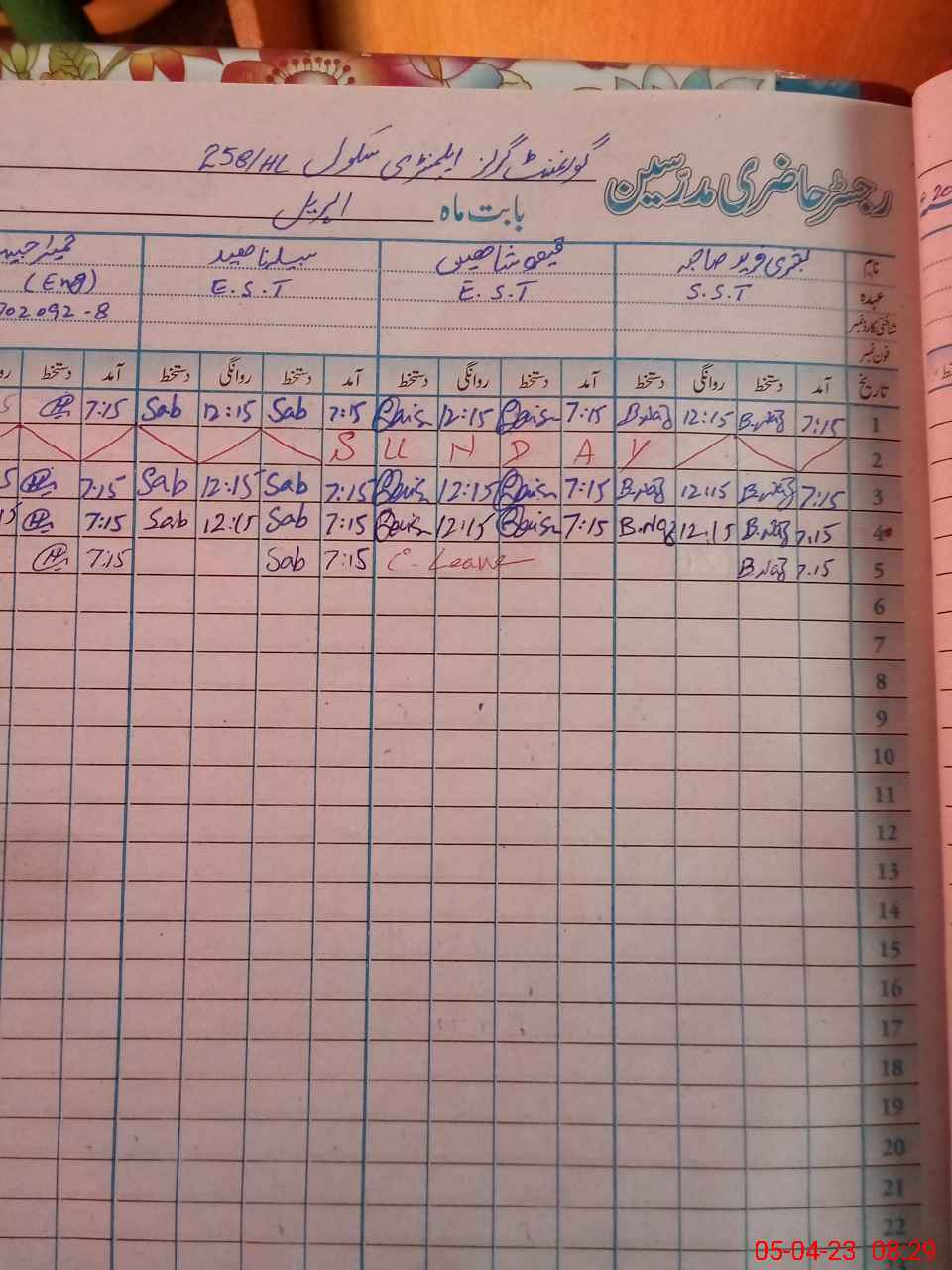 | Name: Sa**** Na**** Designation: (School Headmaster's/Headmistress's) EST Phone/Cell Number: 03**** |