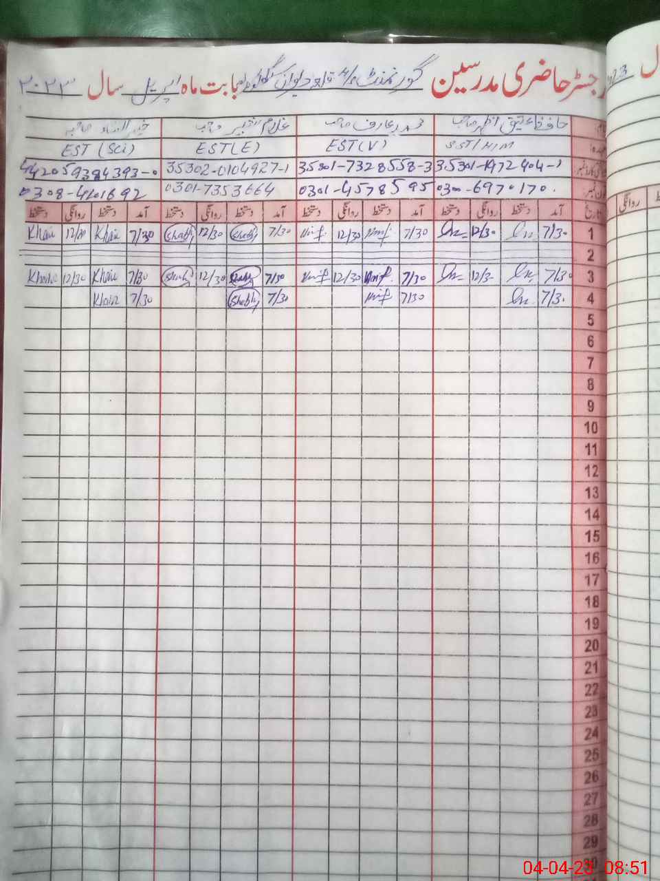 | Name: Ab**** Re**** Designation: (School Headmaster's/Headmistress's) SST Phone/Cell Number: 03**** |