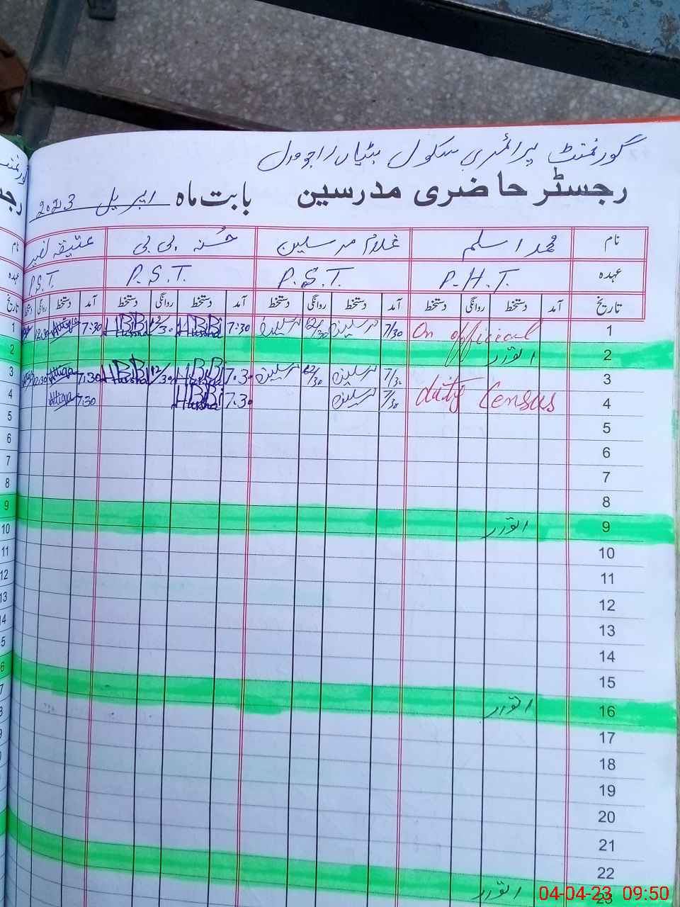 | CNIC | Full Name | Designation | R/C | Absence During Last Calender Month |