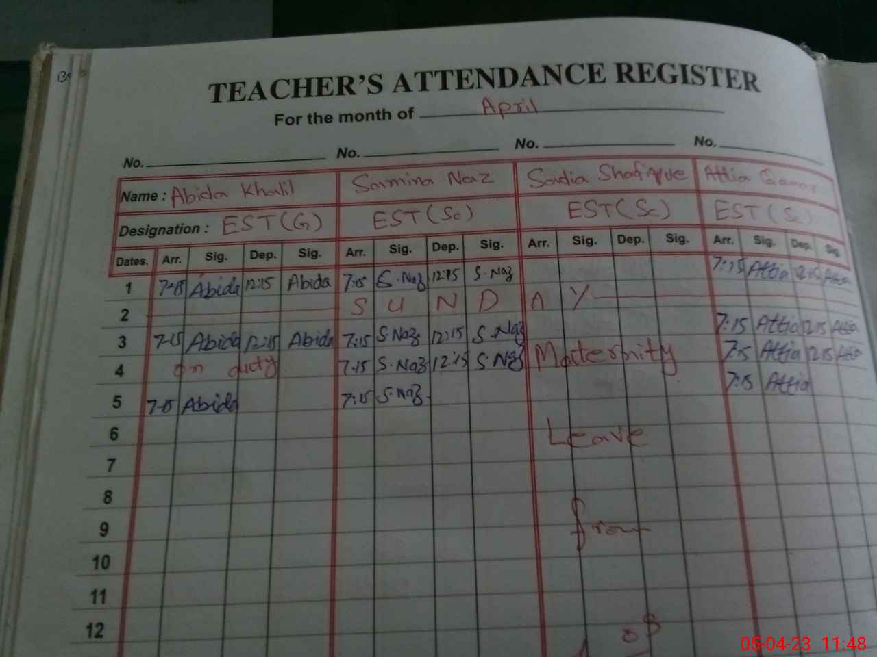 | 36**** | Za**** Ma**** | Contract | 0 | 2 | 0 | 0 | 0 | 0 | 0 | 0 | 0 | Exam Duty | |