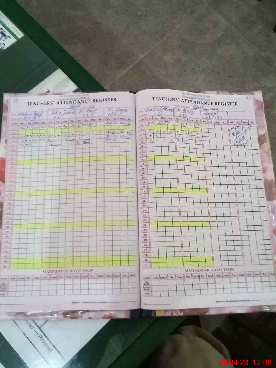 | Leave | Duty | Absent | Maternity | Medical | Ex- Pak |