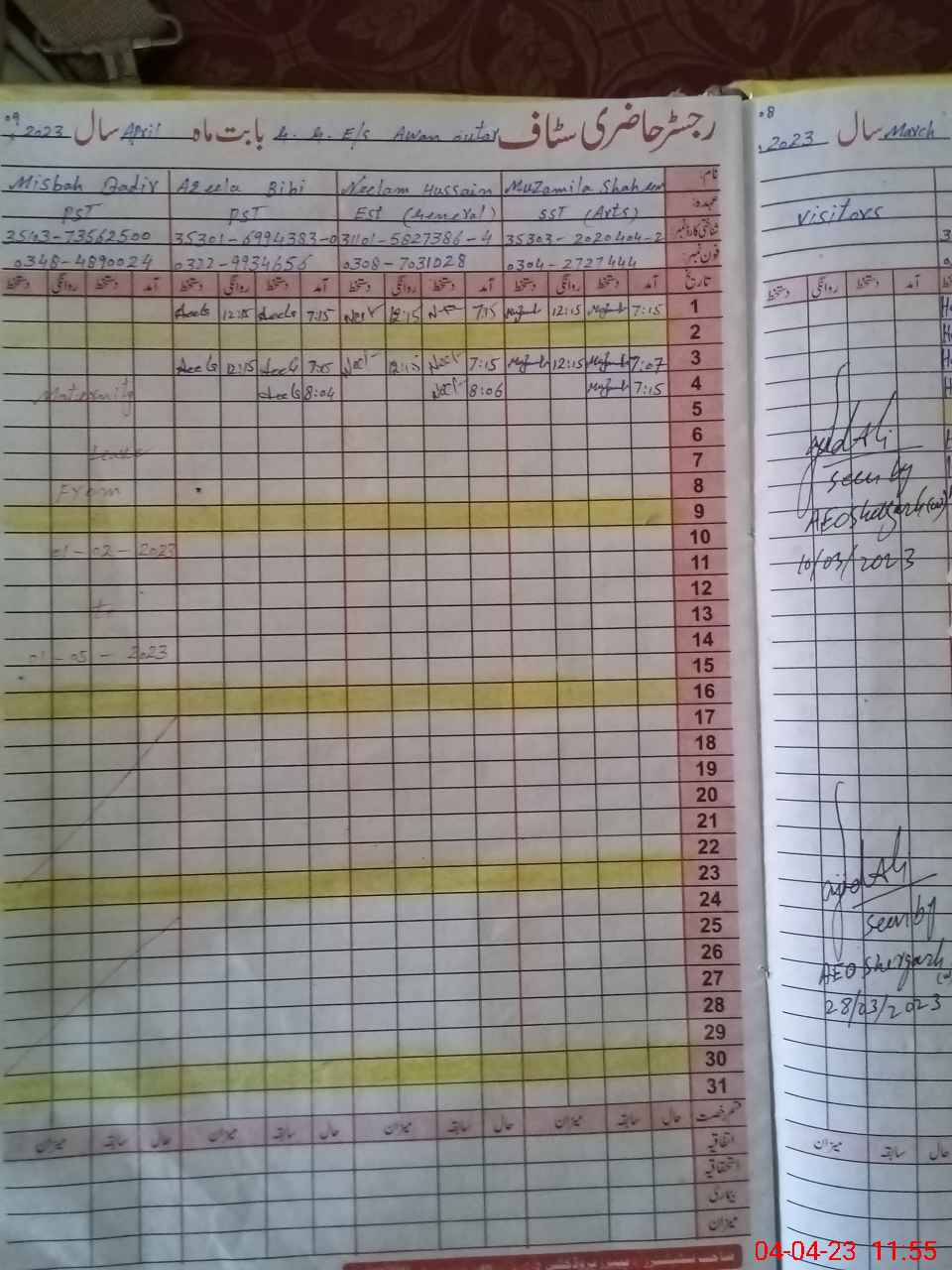 | Name: Mu**** Sh**** Designation: (School Headmaster's/Headmistress's) SST Phone/Cell Number: 03**** |