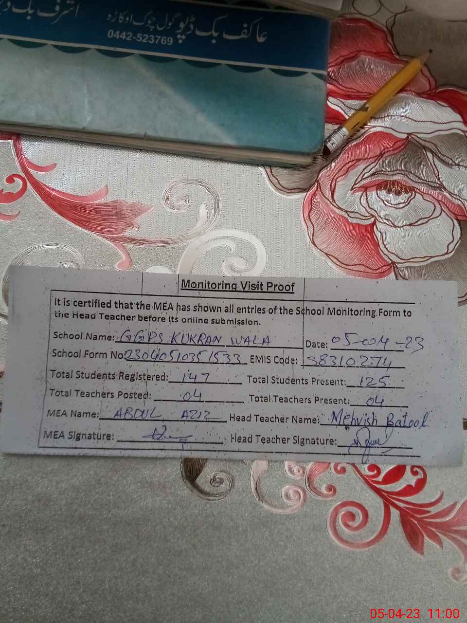 | EMIS Code: 38310274 | Name of School: GGPS KUKRAN WALA WANDHA | |||