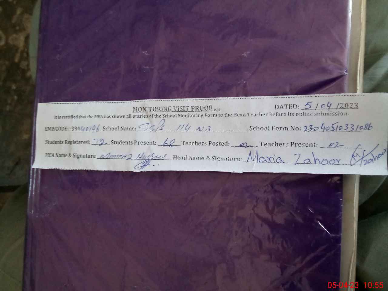 | EMIS Code: 38440196 | Name of School: GGPS CHAK NO.114 NB | |||
