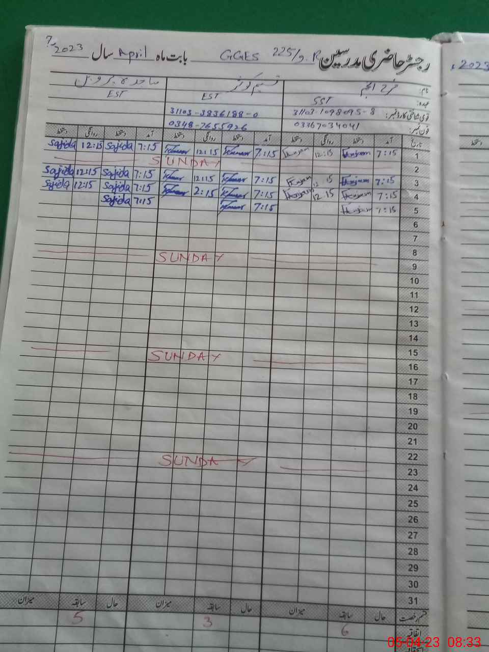 | Name: FA**** AN**** Designation: (School Headmaster's/Headmistress's) S.S.T. GEN Phone/Cell Number: 03**** |